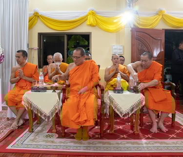 จากภาพบรรยากาศจริง จะเห็นพระสงฆ์กำลังประกอบพิธีอย่างสงบและเป็นระเบียบ แสดงถึงความศักดิ์สิทธิ์และความเคารพในพิธีกรรม