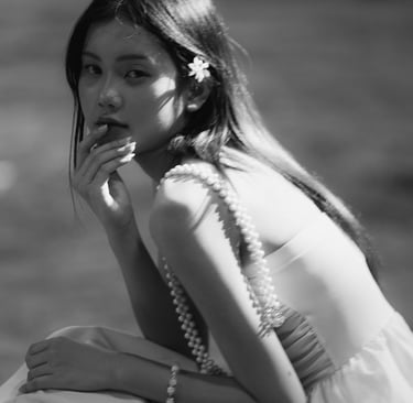 ภาพถ่ายขาวดำ (Black & White) คือหัวใจของงานสไตล์ Art & Dramatic เพราะเมื่อเราตัดเรื่องสีออกไป สิ่งที่เหลืออยู่คือ "อารมณ์" และ "Texture" ของภาพอย่างแท้จริง ไม่ว่าจะเป็นรอยยิ้มที่ส่งผ่านสายตา หรือความละเอียดของงานปักบนชุดมุก เมื่อรวมกับกำแพงอิฐที่มีลวดลาย ยิ่งทำให้ภาพนี้ดูเหมือนงานศิลปะที่วางไว้ในแกลเลอรีครับ