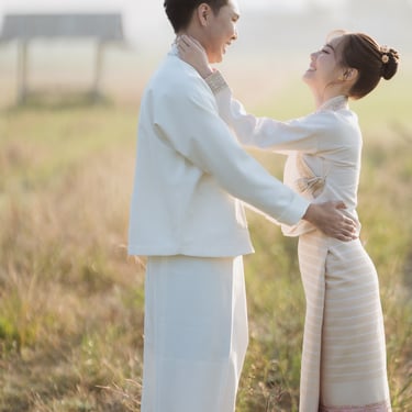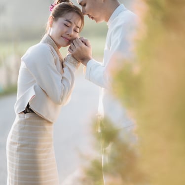 ช่วงเช้าและช่วงพระอาทิตย์ตกเป็นช่วงเวลาที่เหมาะสำหรับการถ่ายพรีเวดดิ้งในทุ่งนา เพราะแสงจะมีความนุ่มและให้โทนสีอบอุ่น ทำให้ภาพดูโรแมนติก