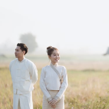 การถ่ายพรีเวดดิ้งในทุ่งนาเหมาะกับชุดโทนสีธรรมชาติ เช่น สีขาว สีครีม หรือสีเอิร์ธโทน ซึ่งจะเข้ากับบรรยากาศของทุ่งนาได้ดี