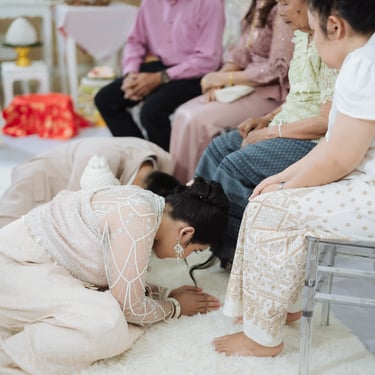 หนึ่งในช่วงเวลาที่ซึ้งที่สุดของพิธีหมั้นแบบไทยคือการที่คู่บ่าวสาวกราบไหว้ผู้ใหญ่ เพื่อแสดงความเคารพและขอพรสำหรับการเริ่มต้นชีวิตคู่ ภาพช่วงเวลานี้เต็มไปด้วยความอบอุ่นและความรักจากครอบครัว